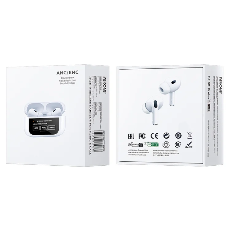 Upplev ljudkvalitet i toppklass med Wekome trådlösa hörlurar. Dessa hörlurar är designade för att ge en exceptionell ljudupplevelse, oavsett var du befinner dig. Den innovativa brusreduceringstekniken blockerar omgivande ljud och låter dig njuta av din musik eller podcast utan avbrott. Laddetuiet har en integrerad display, vilket gör det enkelt att hålla koll på batterinivåerna och laddningstiden. Perfekta för både vardagsanvändning och längre resor, Wekome hörlurar kombinerar stil och funktionalitet för den moderna ljudälskaren.